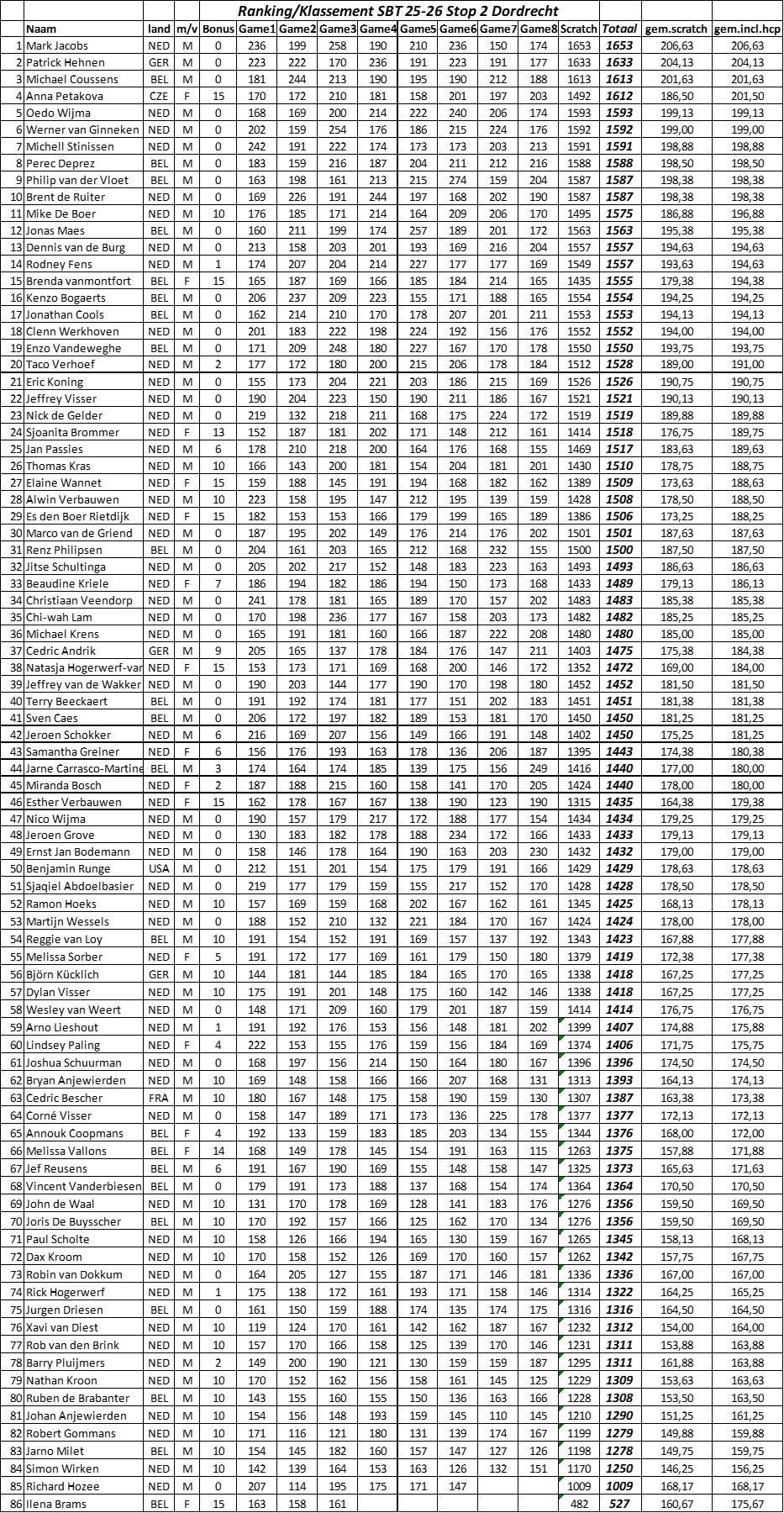 Resultaten Stop 1 Dordrecht