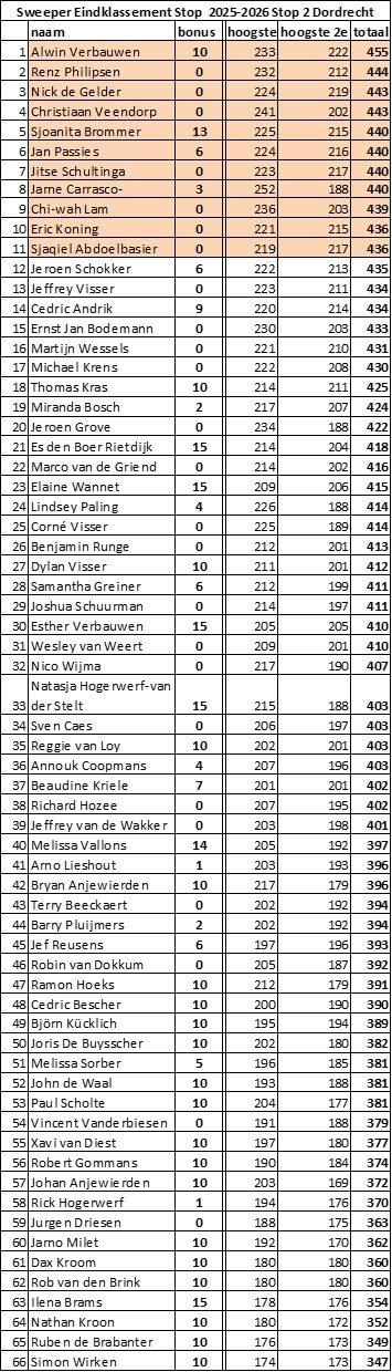 Resultaten Stop 6 Dordrecht