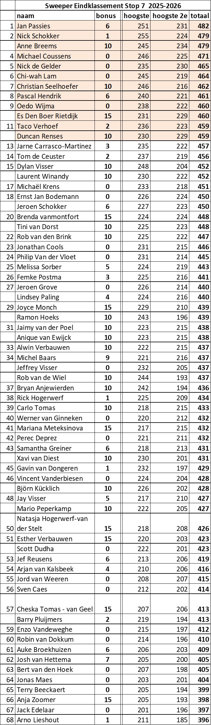 Resultaten Stop 6 Breda