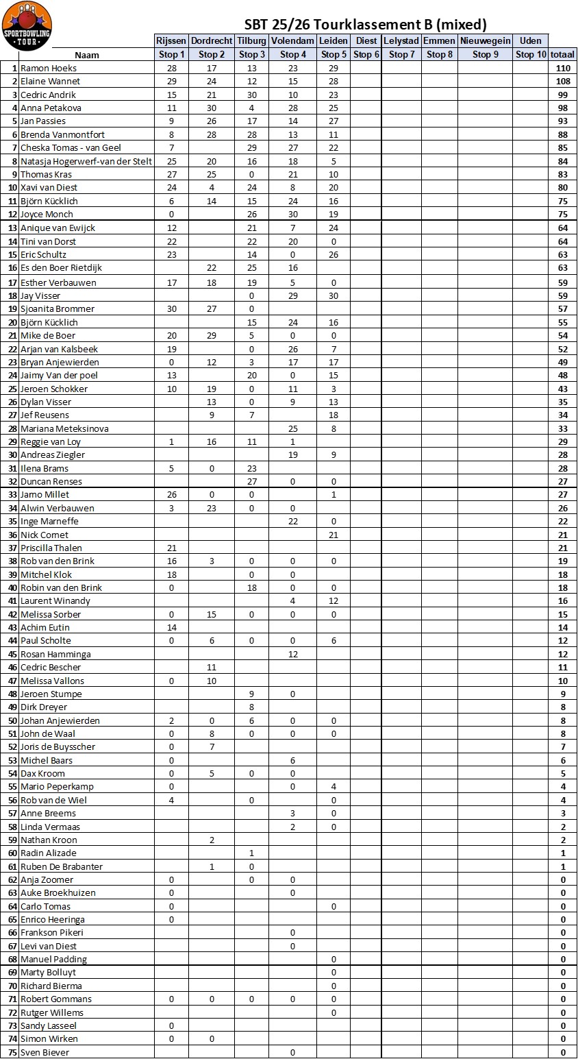 Resultaten Stop 1 ’s Hertogenbosch Open 2016